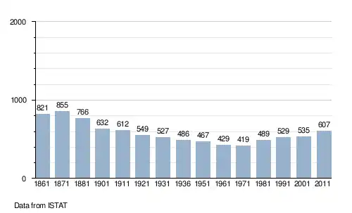 - ^ "Superficie di Comuni Province e Regioni italiane al 9 ottobre 2011". Italian National Institute of Statistics. Retrieved 16 March 2019.