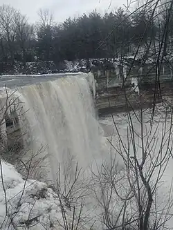 Two of Jacob's sons, John and George, purchased 1200 acres (486 ha) of land in Niagara in 1807 from Thomas Butler, brother of Col. John Butler.[4] Twenty Mile Creek, which runs through the area, has two waterfalls. The Ball brothers built a grist mill, a saw mill at the lower falls and a woollen mill at the upper falls.[1] During the War of 1812, the settlement was heavily utilized by the military, as part of a regiment was stationed there for a time.[3]