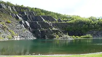 Slate from the East Laroch quarries, established just two years after the infamous Glencoe Massacre of 1692, was used to provide the roofing slate for much of Edinburgh and Glasgow's skyline in the succeeding centuries. It is of good quality but one weakness is the presence of Iron Pyrite in the rock. These crystals quickly rust away when exposed to the weather, leaving clean square holes and a brown rusty streak. Over 75% of the slate cut from the quarries was unusable as roof covering for this and other reasons. In 1955 the quarries closed, leaving waste mountains for the abruptly unemployed and impoverished villagers to sort out.