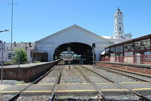 Ballarat railway station is a regional railway station located on the Ararat and Mildura railway lines. It serves the city of Ballarat, Victoria, Australia, and opened on 11 April 1862 as Ballarat West. It gained its current name in 1865.[2]