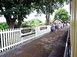 In 2001 an up platform at full height was established for the first time; platform edging slabs used had previously been employed for the former South Line departure roads at Douglas Station and was retained for future use when lifted in 1979. At the same time the down platform was extended to accommodate six carriages, the newer portion being narrower than the original. In 2002 the opposite side of the line also received a full-length platform, which also serves the goods siding,