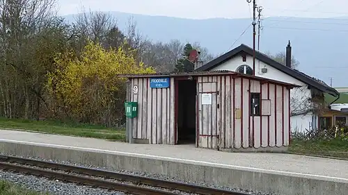 Ballens-Froideville railway station (French: Gare de Ballens-Froideville), is a railway station in the municipality of Ballens, in the Swiss canton of Vaud. It is an intermediate stop and a request stop on the 1,000 mm (3 ft 3+3⁄8 in) metre gauge Bière–Apples–Morges line of Transports de la région Morges-Bière-Cossonay.[1]
