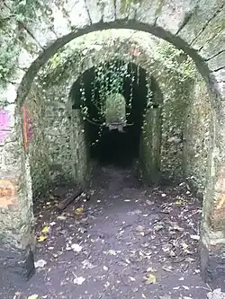 The gunpowder mills were first established in Ballincollig in 1794, by Corkman Charles Henry Leslie alongside his silent partner John Travers,[3] trading under the name of Leslie, Travers and Company, Royal Irish Gunpowder Mills.[2] He chose Ballincollig as a site for the gunpowder factory for several reasons: from a safety perspective, it was relatively remote at the time, far from any well-populated areas; on the other hand, it was close enough to Cork city to avail of its port to facilitate the importation of the raw materials required for the production of gunpowder.[4] Furthermore, its location in a flat valley and its water-power potential influenced Leslie's choice of Balincollig as the ideal site. Leslie built a weir to produce a head of water and a canal, one and a half miles long which was fed by the River Lee and which powered his two mills at the eastern end of the site.[5] For the first twenty years following their construction, the mills were the largest in Ireland,[2] and second largest in Europe after Waltham Abbey.[6] To ensure sufficient water supply, three existing River Lee channels were merged into one near the old Inniscarra graveyard which resulted in later flooding of the area.[7]