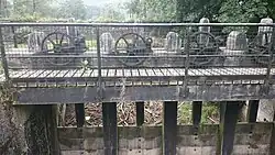 The weir, constructed by Leslie when the mills first opened, collapsed in December 2014.[17] The site surrounding the weir had become a popular swimming location, but following its collapse the current has flowed much more quickly, and several people have drowned or almost drowned in the waters close to the weir.[18][19][20] It has been proposed that the Office of Public Works may intervene in the restoration of the weir.[17]