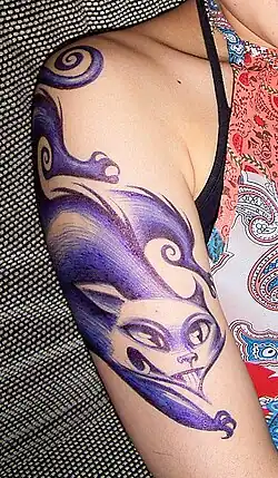Ballpoint pens are among the various means of creating body art, as temporary tattoos for recreational, decorative and commercial purposes.[48] Ink is applied directly to skin in a manner similar to that of an actual tattoo gun, except that a ballpoint pen tattoo is temporary; it can be washed off at the wearer's discretion, or left to fade at its own natural rate (see gallery below). This can be an attraction for people who may not care for a permanent tattoo, but nonetheless enjoy the imagery.