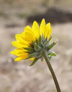 Balsamorhiza careyana is a species of flowering plant in the tribe Heliantheae of the family Asteraceae known by the common name Carey's balsamroot. It is native to northwestern United States Washington and Oregon where it grows in arid and desert regions east of the Cascades. It is very similar to a close relative Balsamorhiza sagittata, but its leaves feel more fine sandpaper-like instead of soft and hairy,[1] the involucre (flower bract) is less densely wooly, and it is probably more resistant to drought.[2]