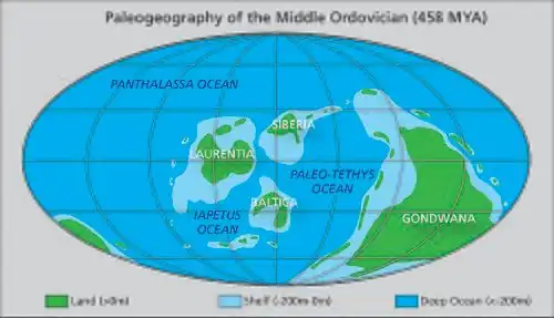 During the Ordovician, Baltica moved northward, approaching Laurentia, which again allowed trilobites and brachiopods to cross the Iapetus Ocean. In the Silurian, c. 425 Ma, the final collision between Scotland-Greenland and Norway resulted in the closure of the Iapetus and the Scandian Orogeny.[4]