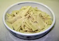 In Vietnamese cuisine, shredded bamboo shoots are used alone or with other vegetable in many stir-fried vegetable dishes. It may also be used as the sole vegetable ingredient in pork chop soup. Duck and bamboo shoot noodles (Bún măng vịt)[21] is also a famous noodle dish in Vietnam.