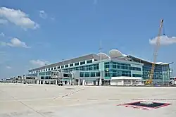 The airport began operations on 24 May 2018 when the Indonesia One presidential aircraft landed at the airport. A grand opening took place in July 2019.[5] The new airport is supposed to function as a reliever airport for Soekarno Hatta, providing additional spillover capacity. Upon completion, the airport will have a total capacity of 29 million passengers annually, with additional space for expansion.[6] The airport planned to operate cargo terminals with an official estimate of 1.5 million tons of cargo by 2020.