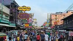 Bang Lamphu has become a popular tourist destination, especially for Westerners. The Khaosan and Rambuttri Roads feature tourist attractions. Accommodations and dining are available including guest houses, hostels, restaurants, street food, bars, cafés, clothes, and travel agencies including Thai massage services.[10] For Thai people, Bang Lamphu is also considered to be a hub for notable school uniform stores.[11][12]