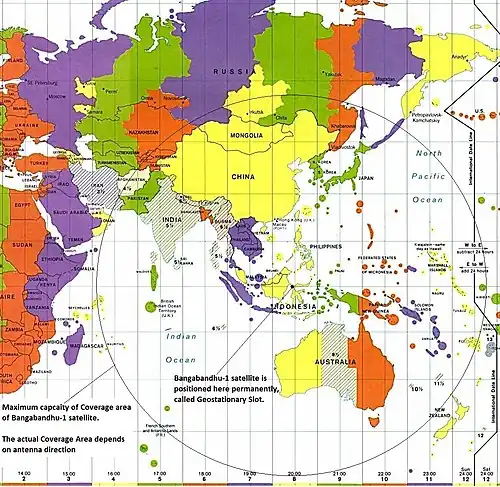 The satellite expands Ku-band and C-band coverage over all of Bangladesh and its nearby waters including the Bay of Bengal, Nepal, Bhutan, Sri Lanka, the Philippines, eastern Indian states (West Bengal, Assam, Meghalaya, Mizoram, Tripura, Nagaland, Arunachal Pradesh) and Indonesia.