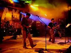 Extreme metal is mainly an underground genre, which became commercially successful in Bangladesh in the late 2000s, when Powersurge and Mechanix took part in D-Rockstar 2008.[49] In that competition, Powersurge finished in first place and Mechanix in second. They were the most significant bands of the genre in the country, and they introduced thrash and groove metal to a wider audience. Severe Dementia introduced death metal a few years before them. Death metal vocals are usually delivered as guttural death growls or high-pitched screaming, complemented by downtuned, highly distorted guitars and extremely fast double bass percussion.[50] The genre's bands had no intention of commercial success, as they were all fans of underground extreme metal of the 1980s.[51] These three bands are considered to be the pioneers of Bangladeshi extreme metal, introducing a different style and sound to rock. They were also criticized for the horrific images on their album covers. Other significant extreme metal bands of the decade include Hallucination, Minerva, Dissector, Thrash, Trainwreck and Nafaarmaan. In 2018, Powersurge guitarist Saimum Hasan Nahian urged the organizers of Wacken Open Air to hold a concert in Bangladesh.[52] The Wacken Metal Battle concert was held in the Russian Cultural Center in Dhaka. Five bands, Karma, Ionic Bond, Torture Goregrinder, Infidel and Trainwreck took part in the competition, with the latter being declared the winner.[53] They also performed at Bangalore Open Air, where they competed against other metal bands from Sri Lanka, Nepal and India. They won entry into Wacken Open Air, the first Bangladeshi band to do so.[54]