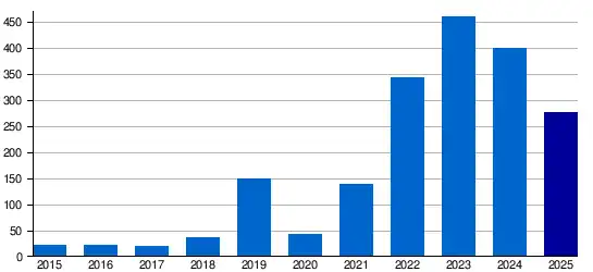 2024 | 20,482 | 18,516 | 21,270 | 36,377 | 40,408 | 37,490 | 42,173 | 42,347 | 38,293 | 37,758 | 31,360 | 32,700 | 399,174 | ![]() |