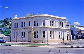 The former Bank of New South Wales building is a two-storeyed stuccoed masonry structure on the corner of Flinders Street East and Wickham Street, Townsville. With the Tattersalls Hotel, the Queensland Building and the Burns Philp Building, it forms a group of late-19th century commercial buildings on the four corners of this intersection. Flinders Street East also retains many other late-19th century commercial masonry buildings.[1]