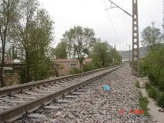 The Baoji–Zhongwei railway is a railway line in northwest China: it starts in Baoji in Shaanxi, passes through Pingliang in Gansu and finally ends in Zhenluobao (镇罗堡) in Zhongwei in Ningxia, with a total length of 498.19 kilometres.[1] Construction on the railway started in 1990[2] and track laying was completed on 10 July 1994. It was electrified and opened in the following year on 8 June 1995.[3] The railway is under the jurisdiction of the Xi'an Railway Bureau in Shaanxi and the Lanzhou Railway Bureau in Gansu and Ningxia. The line is single-track and electrified. It is a key line connecting Shaanxi, Gansu and Ningxia.