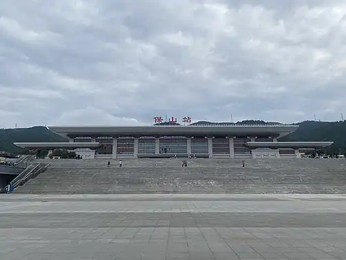 Baoshan railway station (Chinese: 保山站; pinyin: Bǎoshān zhàn) is a railway station in Longyang District, Baoshan, Yunnan, China. It is an intermediate stop on the Dali–Ruili railway. The station opened on 22 July 2022.[1][2]