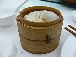 a small, meat-filled baozi from Shanghai containing an aspic that reverts to a juicy broth when cooked. Because it is succulent and prepared only with thin, partially leavened dough, it is sometimes considered different from other bao types, and more closely resembles a jiaozi (dumpling). | |