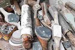 The sculptures featured at the museum (mainly in the secluded garden) were some of her favourites. Her workshop also includes a queue of uncut stones that one visitor has described as "still waiting for their moment in the shadow of her workshop". In 1950 she acquired two huge blocks of Galway limestone which she carved into her Festival of Britain commission, the Contrapuntal Forms. A set of photographs in the museum shows the progress of this project. Wood carving was done in an upstairs room, and the bronze statues she started casting in 1956 had their origins in the plaster prototypes she worked on in the upper of the two outside studios.[1]