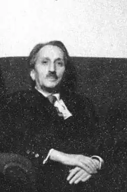 By 1905, Lazarovici was in Bucharest, co-opted by Constantin Mille to write for Adevărul, with a series of rhyming columns that he signed as "Trubadur".[22] With his Romanian-sounding adoptive surname, Lăzăreanu had poems hosted in A. D. Xenopol's Arhiva of Iași.[23] Contemplative and rustic, such pieces brought him to the attention of A. C. Cuza, a traditionalist and antisemitic poet-doctrinaire, who was unaware of Lăzăreanu's Jewishness. Cuza traveled to Botoșani just to greet the "national troubadour", only to be informed that "it is the Jew's Lazarovici's boy [...] who is as shriveled as a raisin, and who looks at the moon like a somnambulist".[7] His other poetry included stanzas honoring those killed in the 1905 Russian Revolution, published in Viitorul Social of Iași.[24] Participating in socialist shows of solidarity with the Russian workers,[13][25] he was by then drawn into anarchist circles, and for a while co-publisher of Panait Mușoiu's newspaper, Revista Ideei.[26] As an ally of Mușoiu's, and as a friend of labor leader I. C. Frimu,[21] by 1907 he was tutoring Bucharest workers, giving them lessons in Romanian grammar and literature, and also "educating them politically".[27]