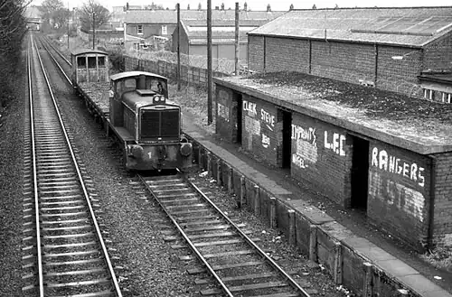 The station closed in 1977 when Northern Ireland Railways services were cut back.[1] All remnants of the station were cleared away during track re-laying in 1997, however its old footbridge still remains in use as a pedestrian crossing over the railway line..