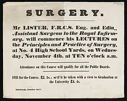 400. ^ Lister J (1870). Journal of Wards 4 and 4. The Royal College of Surgeons of Edinburgh Library and Archive, Edinburgh: Royal Infirmary of Edinburgh.