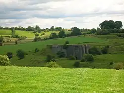 This artificial mound or moot hill was the site where proclamations of the Giffen Castle Baronial Court's judgements were made. For serious crimes the men were hung here and women were drowned a pit which would have been nearby. This situation, known as the feudal Barony right of 'pit and gallows'[14] existed at many other sites, such as at Beith, Kilmarnock, Aiket, Ardrossan, and Dalry. Often the mounds were wooded and a Dule Tree may have been used as the gallows. Brehons or Judges administered justice from 'Court Hills', especially in the highlands. Auchenmade had a Law hill mound nearby, possibly destroyed by the railway. The 'Green hill' stood near to Greenhill farm.[41] No sign of the moot hill seems to survive, however a bridge near to Greenhill is marked as 'Tappethillock', meaning a flat-topped hillock, which may refer to it.