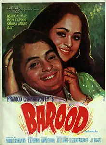 Barood (transl. Gunpowder) is a 1976 Indian Hindi-language action crime film directed by Pramod Chakravorty, with screenplay by Sachin Bhowmick and dialogues by Ahsan Rizvi.[1] It stars Ashok Kumar, Rishi Kapoor, Shoma Anand, Ajit and Reena Roy in leading roles, with Dharmendra and Hema Malini in guest appearances. The film was shot in several foreign locations, including Las Vegas, New York, Paris, Madrid and Geneva.[2]