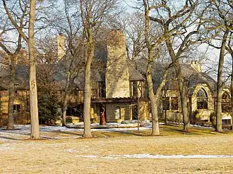 In 1921, the Barrington Hills Country Club, with its eighteen-hole golf course, was established on 200 acres (81 ha) of unfarmable land between County Line Road, Oak Knoll Road, and Northwest Highway. The land was donated by three of the club's early founders: H. Stillson Hart, who owned the farmstead known as Hart Hills just to the east of the club; George E. Van Hagen of Wakefield Farm, who owned the land just to the west of the club; and J.R. Cardwell, whose Oak Knoll Farm swelled along the winding Oak Knoll Road on the club's northern end. Van Hagen became the club's first president. Noted Chicago architect Robert Work, who was associated with David Adler, designed the first clubhouse, which was opened in 1926 and burned to the ground in 1930. Work designed the second clubhouse as well, which opened in 1931 and still stands.[10]