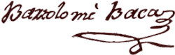 Bartolomé Baca was born around 1767 in Belén, Nuevo México.[1] He came from a Spanish aristocratic family, and inherited or acquired great personal wealth.[2] He married María de la Luz Chávez, daughter of Vicente Chávez and Juana Aragón, on 2 May 1790 in San Felipe de Neri, Albuquerque, New Mexico.[1] Baca was made captain of Albuquerque's volunteer militia when it was organized in 1808, carrying out his duties "with honor and valor".[3][4]