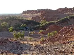 It was previously known as the Lower Nemegt Beds occurring beneath the Nemegt Formation and above the Djadokhta Formation. It has been suggested that the Djadokhta and Baruungoyot Formations are lower and upper parts, respectively, of the same lithological unit and the boundary between the two does not exist. The stratotype of the Baruungoyot Formation is the Khulsan locality, east of Nemegt. At Nemegt, only the uppermost barungoyotian beds are visible. The Red Beds of Khermeen Tsav are also considered part of the Baruungoyot Formation. It is approximately 110 metres (360 ft) in thickness,[2] and was laid down roughly 72-71 million years ago. Given the new date for the start of the Maastrichtian (72.1 MYA) a basal Maastrichtian age seems probable. The Baruungoyot Formation preserves an environment of sand dunes, created from wind-eroded rocks (aeolian dunes).