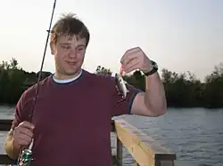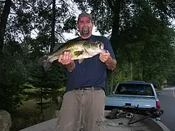 Bass fishing is the recreational fishing activity, typically via rod-based angling, for various North American freshwater game fishes known collectively as black bass.[1] There are numerous black bass species targeted in North America, including largemouth bass (Micropterus salmoides), smallmouth bass (Micropterus dolomieui), spotted bass or Kentucky bass (Micropterus punctulatus), and Guadalupe bass (Micropterus treculii).[2] All black bass species are members of the sunfish family Centrarchidae.