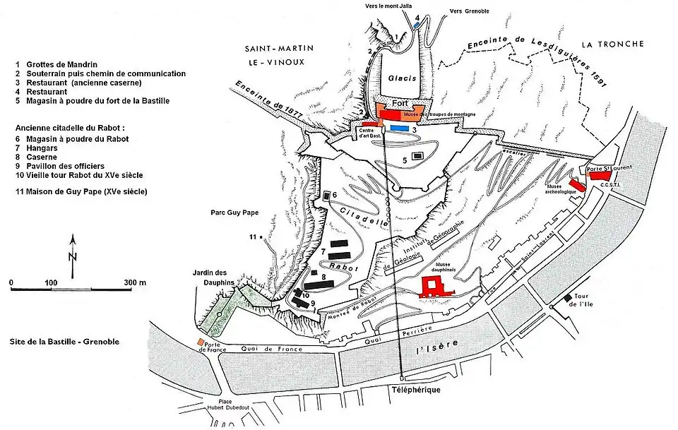 - ^ According to Maurice Mercier in Histoire des fortifications de Grenoble, p.65, the remains of this first fortress must lie underneath the existing glacis.