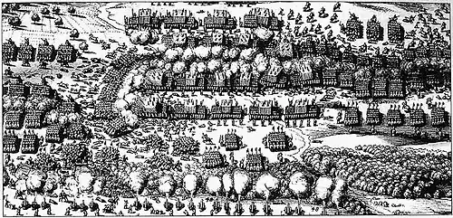 From the late 16th century into the 18th century battalia, was a description used both for the positioning of units in an army (or navy) on a battle field and the formation in which individual units deployed for battle (battle array or battle order).[1][2] Sometimes it was used to describe the main body of an army deploy for battle but excluding the wings and other units such as those deployed in front of the main line in skirmishing formation etc.[3] Battalia differs from battalion which is generally the smallest military unit capable of independent operations and would have formed up in its battalia when going into battle.[4]