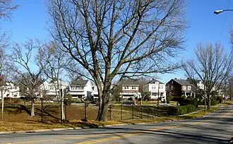 The Battery Court Historic District is a national historic district located at Richmond, Virginia. The district encompasses 549 contributing buildings and 1 contributing site (Battery Park) located north of downtown Richmond and west of Barton Heights and Brookland Park. The primarily residential area developed starting in the early-20th century as one of the city's early “streetcar suburbs.” The buildings are in a variety of popular late-19th and early-20th century architectural styles including frame bungalows, American Foursquare, Colonial Revival, Tudor Revival, and Mission Revival. Notable non-residential buildings include the Overbrook Presbyterian Church (now All Souls Presbyterian) and Battery Park Christian Church (now Mount Hermon Baptist).[3]