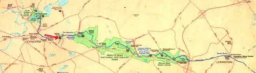 The route deemed to be the Battle Road falls completely within today's Minute Man National Historic Park.[1]