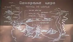 The hajduks lay in ambush in the thick forest on the western side of the hill.[9] Most of the information on the battle is traditionally taken from Gusle player Filip Višnjić's epic poem Boj na Čokešini.[9] Although he was not a witness to the battle (he was blind and arrived in Serbia in 1809), he received much material for his poem as the battle was a popular topic according to newer historiography.[11] In it, the hajduks had the upper hand in the beginning, managing to kill several named flag-bearers (bayraktar), which is taken to be true.[11] In battles, the flag-bearers increased moral and were always targeted first.[3] Further on, the Ottoman Bosnian numerical supremacy became clearer, which is also pointed out by Višnjić.[11] A later source claims that the hajduks first lost the south part of their cover and then after fiercer attacks lost the north part, after which they were completely surrounded.[11] It became a close combat fight with strangling and cutting that continued to dusk.[11] The Ottoman Bosnian troops were reinforced during the battle from Janja.[1] According to some accounts the Bosnian troops also had several cannons.[4] The two Nedić brothers were wounded in the legs and fought on their knees until their deaths, with exhumation showing that Damjan had a round bullet and hole in his chest the size of a small pear (his body was transferred to the memorial graveyard in 1890).[12] The rebels were out of ammunition and their weapons became deformed due to constant shooting.[4] The last surviving hajduks fell by the Lipovica stream.[11] Only two Serbs survived the battle, wounded monk Simeon and Nedić's apprentice Grujica Jevremović who survived while fetching food for the hajduks.[3]