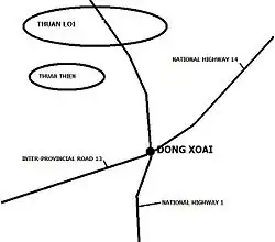 After those operations the VC 9th Division was ordered to attack Đồng Xoài.[9]: 22 Đồng Xoài was a district seat in southern Phuoc Long Province, nestled in sparsely populated country dominated by forests and rubber plantations. Outside the range of most friendly artillery, the town sat astride a strategic road junction which connected Inter-Provisional Road 13, National Highway 1 and Highway 14.[8]: 116 [2]: 624