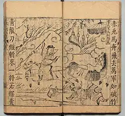 At the time, Boma (白馬; near present-day Hua County, Henan) lay south of the river across from Liyang (黎陽; north-west of present-day Xun County, Henan), a major base for military recruits.[2] The crossing between Boma and Liyang was deemed to be of tremendous importance as a strategic link on the main north-south route between Yuan Shao and Cao Cao's territories.[3] Sometime between 8 September and 7 October 199, Cao Cao advanced to the vicinity of Liyang in a probing action[4] and stationed Liu Yan (劉延), the Administrator of Dong Commandery, at Boma.[5] The position at Boma allowed Cao Cao's forces to overlook the vital ford while serving as a first line of defence against Yuan Shao's forces.[5] However, Cao Cao had set his sights on a concentrated confrontation at the topographically advantageous city of Guandu (官渡; northeast of present-day Zhongmu County, Henan) to the south,[6] thus the purpose of defending Boma was only to delay enemy advances across the river.[5]