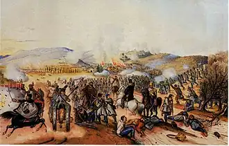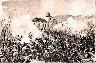 On 2 April, the preliminary fighting began when the VII Corps clashed with the Austrian III Corps at the Battle of Hatvan. Schlik had wanted to obtain information for Windisch-Grätz about the positions and numbers of the Hungarian army and had moved towards Hatvan but was defeated there by the VII Corps and forced to withdraw without accomplishing his purpose. Windisch-Grätz assumed that Schlik had come up against the main Hungarian army and remained ignorant of the true whereabouts of the Hungarian army.[8] The other three Hungarian corps moved south-west as planned and on 4 April met and defeated the Austrian I Corps at the Battle of Tápióbicske. Although Klapka's attack at Tápióbicske had revealed where the Hungarian troops really were, Görgei decided to continue with the plan.[9]