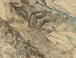 Being shallow, this creek usually did not represent an important barrier for anybody, but the heavy snowfalls and rains from the beginning of April 1849 changed this situation completely, making its banks marshy and its riverbed sludgy, which made its crossing very difficult, except through the bridges laying in Isaszeg, Gödöllő and at a couple of hundred meters north from the latter locality. East to Gödöllő, until the monastery of Máriabesnyő, and south from it, lies a depression, continued, towards the Galga valley, by the deep valleys of the Aranyos and Egres creeks. The stream of the Rákos is accompanied from both sides by gently sloping flat-topped hills, which become high and abrupt only on its right bank, right in front of Isaszeg, rising considerably above the village, the wide valley, with accidented terrain, and the woody highland, which lie west from it. The region east of the monastery of Máriabesnyő and Isaszeg was covered by woods, called in 1849 Királyerdő (the King's Wood), which encircled Isaszeg semicircularly. Királyerdő was a 14,000 paces long, well-managed, easy-to-cross forest, with many clearings, having its narrowest portion, along the Isaszeg-Dány road, around its middle 1200 paces, and at Alsó malom (Lower Mill) around 4000 paces, being on its southern end even wider. The wide vineyard on the northern end of Királyerdő, as well as the deer park southeast from Gödöllő, were also important natural shelters for the combatants on the left bank of the Rákos. Despite being more fragmented than those from the left bank, the heights on the right bank of the Rákos were unforested, thus they were harder to hide the troops' movements.[14]