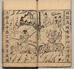 While Zhou Yu and Liu Bei were besieging Jiangling on the frontlines, Liu Bei authorized Zhang Fei and Guan Yu to command his troops. He suggested to Zhou Yu to block Jiangling from receiving new supplies as a means of driving Cao Ren out. Thus Guan Yu was sent to intercept enemy reinforcements in the north, setting up blockades along the main passages, cutting off all northern routes leading to Jiangling.[8] Guan Yu, along with Su Fei (苏非), led a special force composed of navy and elite infantry, sailed up the Han River, infiltrating Cao Ren's territory.[9] Cao Cao's general Li Tong engaged with Guan Yu's blockade to aid Cao Ren, dismounting and removing the blockades one by one to advance forward, fighting valiantly. However, Li Tong died during the campaign from illness.[10] Xu Huang and Man Chong, who was stationed at Dangyang, also engaged with Guan Yu in Hanjin(漢津) to aid against Zhou Yu's advances in Jiangling, but only Xu Huang is recorded to have broke through the blockade to support Cao Ren.[11][12]