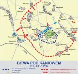 Battle of Kaniv, or Battle of Kaniów took place during World War I on the night of 10–11 May 1918, near Kaniv, Ukraine (Ukrainian: Канів, Polish: Kaniów) between Polish and German army troops. The fighting pitted the Polish II Corps in Russia (including Brigade II of the Polish Legions), under General Józef Haller von Hallenburg, against the German Imperial Army (including the 28th Landwehr Brigade), under General Franz Hermann Zierold. Ultimately the Germans were victorious with about half of the Polish forces surrendering and the rest retreating in disarray.[1]