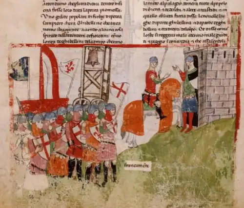 ![]() Miniature depicting the Florentines at Siena Nuova Cronica Vatican Library Chig.L.VIII.296 | |||||||