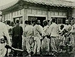The Battle of Namdaemun (Korean: 남대문 전투), also known as the Battle of the South Great Gate, was a rebellion by the Korean army against Japanese forces in Korea as a reaction to the disbandment of the Korean army following the Japan–Korea Treaty of 1907. It took place at the Namdaemun Gate in Seoul on August 1, 1907. Under the pretext of the Hague Secret Emissary Incident, the Japanese coerced Emperor Gojong into abdicating and imposed the Eulsa Treaty. When some armed soldiers joined the protests against Emperor Gojong's abdication, the Japanese hastened the disbandment of the military. At midnight on July 31, they threatened the royal court and issued an imperial decree for the disbandment of the military, followed by the disbandment ceremony the next day. Although the military of the Korean Empire resisted, they were suppressed. The disbandment of the military symbolized the practical downfall of the Korean Empire. As soldiers from disbanded units joined the independence army, the anti-Japanese armed resistance unfolded in earnest.[1]