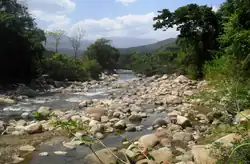 The Liberals hoped to cross the Zulia River west of Cúcuta and escape the Conservative forces. The rebels crossed the Zulia at a tributary, the Peralonso River. Although the Peralonso was shallow enough for the soldiers to wade across, rain had swollen the water, forcing them to cross at La Laja Bridge, a small suspension bridge that spanned the river.[21][22][4] The rain stopped on the night of 14 December.[23] Conservative advance forces under González caught up to the Liberals at the Peralonso on the morning of 15 December, and both sides dug trenches on either side of the river.[24] The Liberals occupied the western bank of the river, and the Conservatives occupied the eastern bank. The two lines of battle stretched from Amarilla to the north to Caimito in the south.[11]