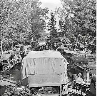 In the several days of fighting that ensued in the Porlampi area, the Finns employed motti skirmishing tactics to counter the superior Soviet numbers. The Finnish artillery was reported to have been particularly effective during the engagement as it disabled many soviet vehicles, blocking roads and creating bottlenecks.[9][13] Late in the day on 30 August the 43rd Rifle Division pushed the 8th Division out of Porlampi and into the nearby village of Somme, which lay several miles to the northwest. There the fighting continued throughout the night. On the morning of 31 August the main body of the IV Corps arrived, attacking the 123rd Rifle Division at Porlampi and the 115th Rifle Division at Ylasomme, an action which collapsed the north flank of the Soviet army. The Soviets were forced back, and the Finnish forces made ready to encircle them. However, the 8th Division was still engaged in heavy fighting with the 43rd Rifle Division to the northwest of town and was unable to complete the encirclement. Using the heavily forested terrain to their advantage, the Soviet 123rd and 115th Rifle Divisions withdrew southwest towards Koivisto.[12][9] Vyborg fell on 31 August, freeing up more Finnish forces to engage the remaining forces of the 23rd Army. The 43rd Rifle Division, which had advanced furthest west, was almost completely destroyed by the Finnish forces on 1 September. Some survivors retreated to the south and were evacuated from the Baltic coast by the Soviet Navy in November.[14]