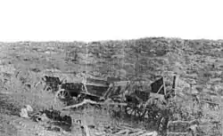 Deraa was attacked on 16 and 17 September by RAF aircraft when sections of the railway to the north and west of the Deraa junction were bombed. The railway south of Deraa was attacked on 17 September by a Sherifial Arab Column supported by British armoured cars and a French mountain battery. They left Qasr el 'Azraq 50 miles (80 km) east of Amman to destroying a bridge and a section of the rail line.[64] By 23 September communications to the west, between Deraa and Samakh and also to the north of Deraa, had been restored.[65]
