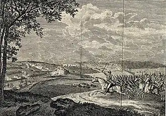 Significant disproportion in numbers forced Suvorov to act more cautiously in contrast to the past, especially since he was dealing with good, regular troops. Therefore, he did not move to attack as usual, but opened cannon fire and only when he noticed some confusion in the ranks of Ogiński's troops, quickly moved to the left, bypassing the most accessible right flank of the Poles. It marked the beginning of Suvorov's offensive.[5] Ascending the high ground, he led his favorite bayonet attack;[5] and there was also a minor combat between the cavalry.[6] The Suzdalian infantrymen under Second Major Kiselyov were pushing their way through.[13] Lithuanian Confederates[6] defended themselves with courage: Ogiński's grenadiers fought desperately in hand-to-hand combat, in which Suvorov of his 900 detachment lost more than 100 men dead (according to another version, approximately 100 men died in the entire battle[8]). Half of the others were injured; the officers were almost all knocked out. Nevertheless, Ogiński was completely defeated and his troops scattered.[5]