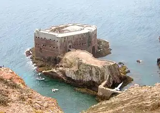 The Battle of Berlengas was fought in 1666 during the Portuguese Restoration War, between the Portuguese defenders of the Fort São João Baptista and a Spanish fleet commanded by Diego de Ibarra. The fleet, which had destroyed Portuguese fisheries, bombarded towns and cut off supplies in one month as part of its onslaught, proceeded to storm the fort on the Berlengas.[5] The fort was destroyed and the entire garrison were captured.[6]