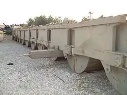 The Israeli "roller bridge", designed to be swiftly deployed on the canal. The fighting at the Chinese Farm meant the bridge reached the canal only after the pontoon bridge had already been deployed.